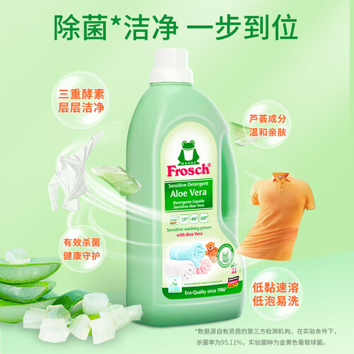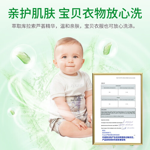 萃取可食用库拉索芦荟,柔软自然消除细菌,呵护敏感肌肤。添加纤维素酶成分,洗后织物纤维保持柔软状态,不会发硬。