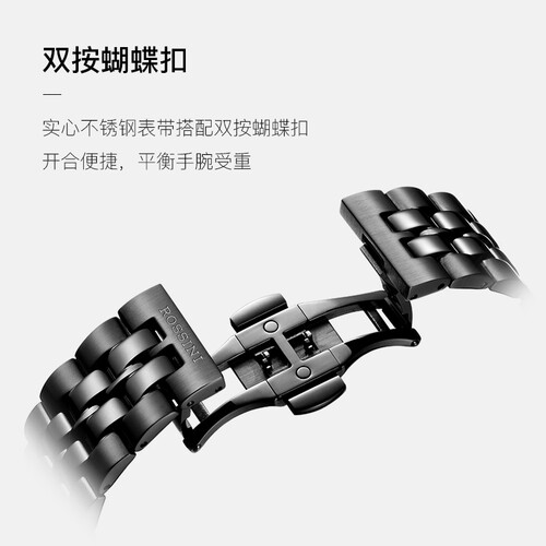 采用环保夜光涂层,吸收光源储能,无惧黑暗,方便全天候清晰读时。蝴蝶表扣,内置双按制弹簧,抛光工艺处理,佩戴舒适贴合。