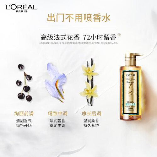 高级法式花香,72小时留香,出门不用喷香水;添加神经酰胺强韧发丝,果酸软化硬水;不添加硅油,洗后秀发清爽不假滑。