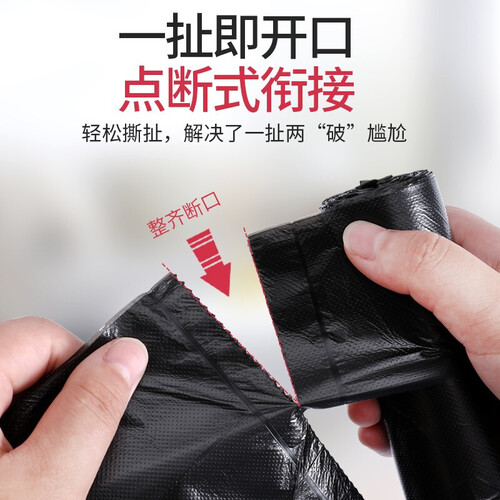 材质加厚防刺破,不惧硬物,可随意装坚硬的垃圾,耐高温,不怕热汤,非常适合厨房使用;点断式设计,轻轻一扯就可用。