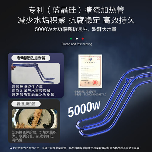 5千瓦大功率,强劲速热,享用热水无需漫长等待。立式安装减少加热面积,提供更多热水量,轻松满足全家使用需求。