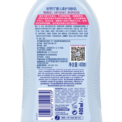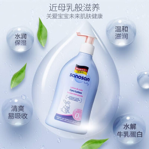 拒绝添加有害化学物质,成分温和,避免刺激到孩子的敏感肌肤;水解牛乳蛋白配方,渗入滋润,重建肌肤健康屏障。