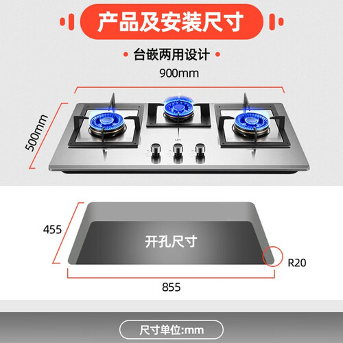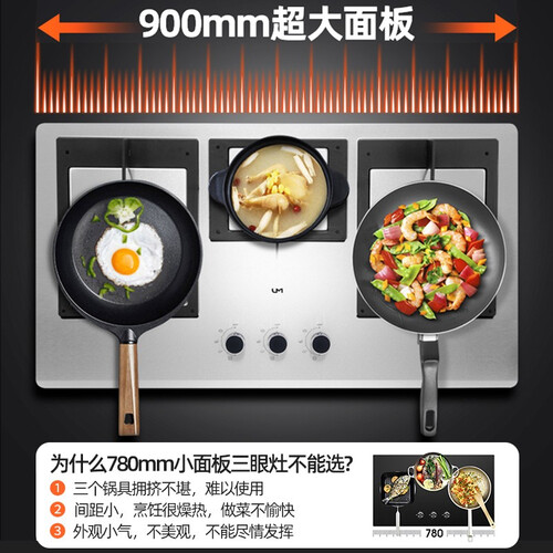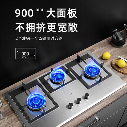 采用不锈钢的900mm大面板,三个灶炉同时工作也不拥挤,厨房生活变得有条不紊。熄火保护装置,使用更安全。