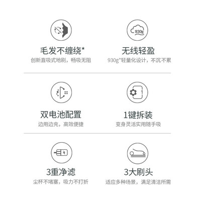 采用了立式的充电底座,便于收纳和充电,同时搭载了超薄的地刷,还有缝隙吸头等毛刷,适用于各种缝隙角落。