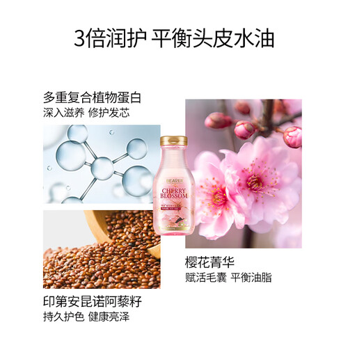 针对油腻头发染烫后的受损发质,蕴含樱花精华,有效调节头皮油脂平衡,修护秀发受损,缓解头发染色后的褪色还有打结问题。