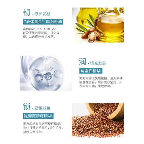 护理干枯受损发质,多维度修护,告别毛躁“狮子头”。沙龙护发配方,特添加摩洛哥油,亲和发丝易吸收,为秀发注入多重滋养能量。
