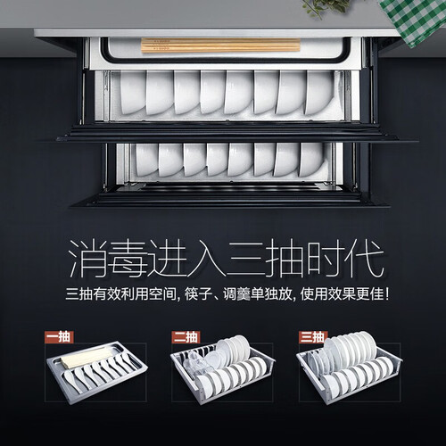 三抽大容量设计,有效利于存放空间,碗勺单独放,使用效果佳。12键多功能消毒,多种模式,轻松洁净餐具。