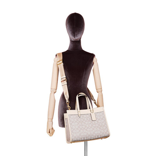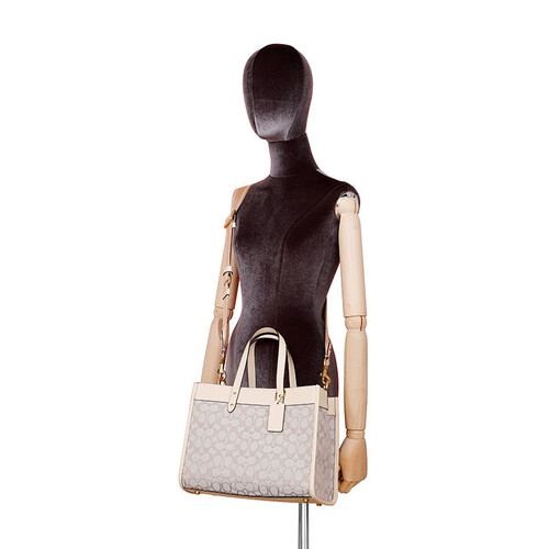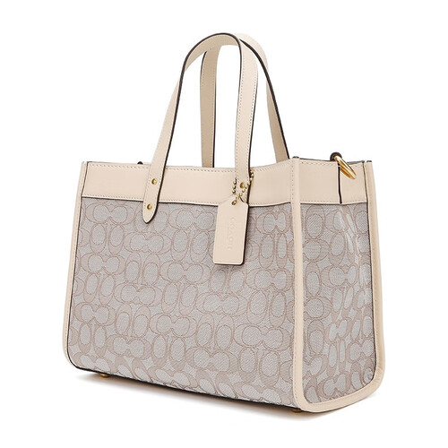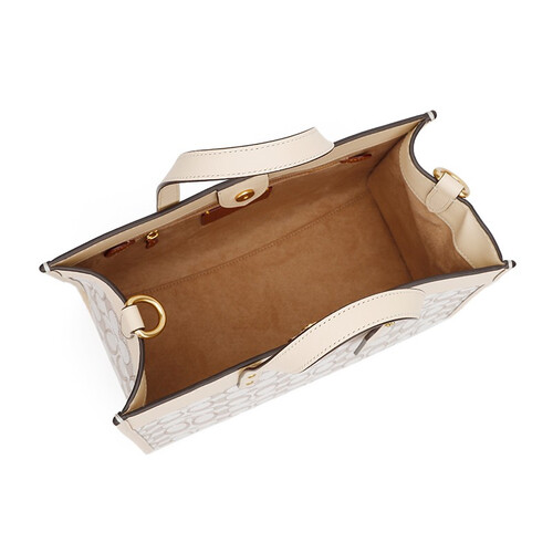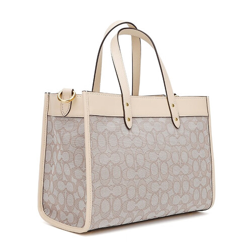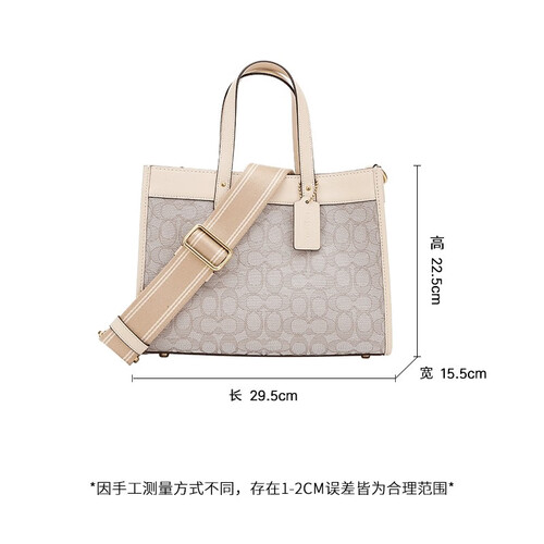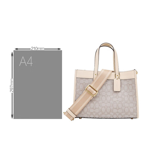 这款低调优雅的米色手提包,采用帆布配皮材质制作,光滑耐磨更显质感。包底立体铆钉设计,减少包包摩擦,延长使用寿命。