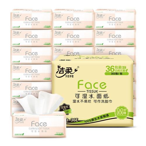 选用原生木浆洁净无菌,不含荧光增白剂安全无添加,让您安心无忧使用。这款是可湿水的抽纸,湿水后也不易破损,可做洗脸巾使用。