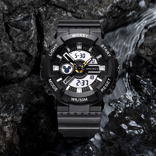 手表采用电子加石英双机芯设计,走时准确稳定。立体大表盘层次分明,显得时尚。三窗电子显示,便捷实用很贴心。
