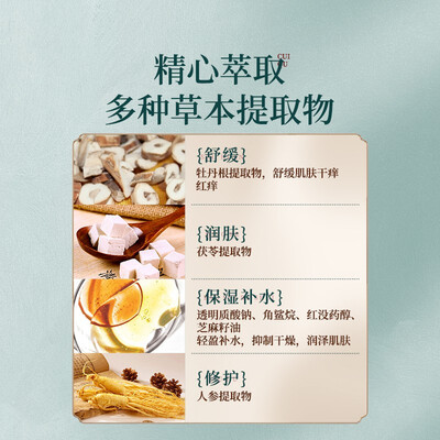 萃取牡丹根部提取物和茯苓提取物,用于舒缓肌肤干红情况,燕麦仁油成分,补充宝宝肌肤所需水分,肌肤润泽更有弹性。