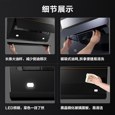 时尚的悬浮式全黑机身,整体拥有更强层次感,打造厨房里的艺术品。全新净味科技,有效去除烹饪油烟,轻松吸尽厨房余味。