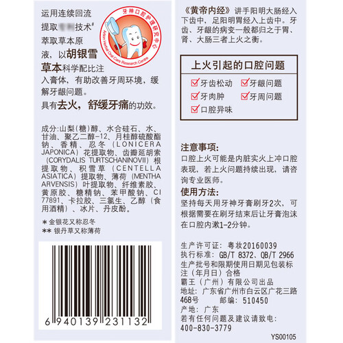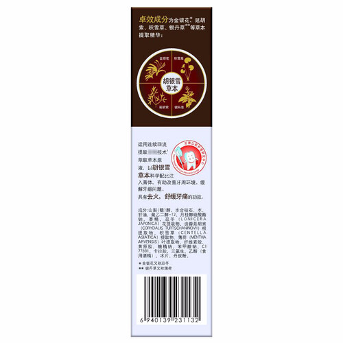 萃取植物精华加持,成分温和安全。牙膏中的成分还可以去除口腔上火,改善牙周牙龈问题,养护口腔健康。