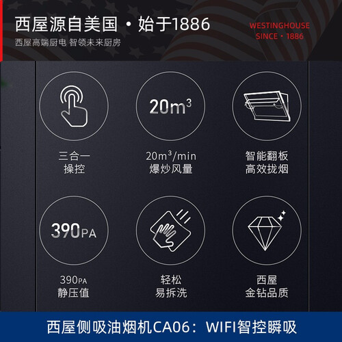支持APP远程操控,可远程开关烟机、调节风量,同时支持体感操控、触控操控,智能便捷,内置塑封交流电机,可防水防油防腐蚀。