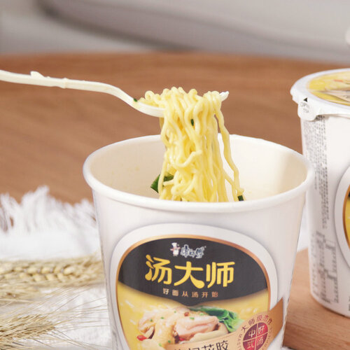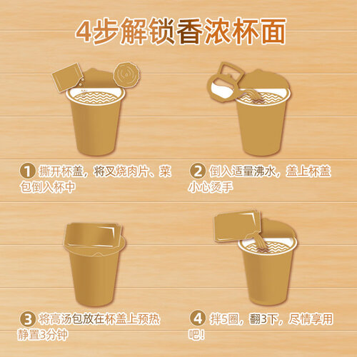 内含蔬菜等多种原料熬成的海鲜汤,增加方便面的鲜香浓郁口感,给予味蕾带来满足感。桶装包装设计,出差携带便携。