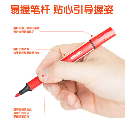 采用纤维笔头,触感细腻又柔软,绘画时不会伤纸,画面更自然。搭配三切面笔帽设计,起到固定作用,画笔更容易放置。