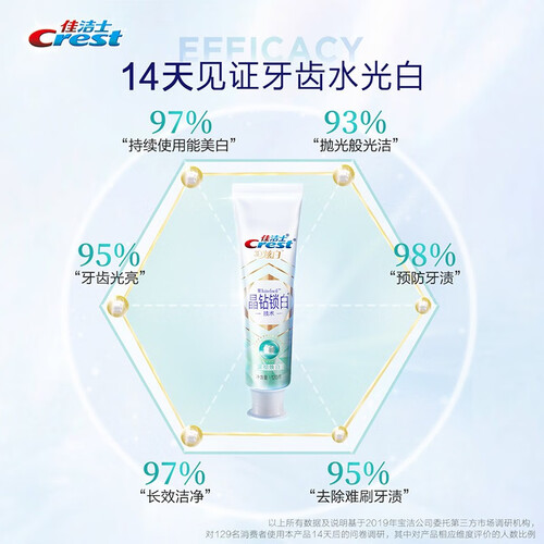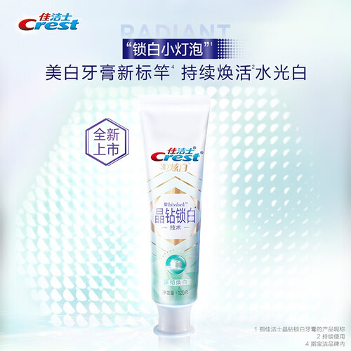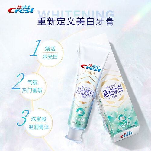 含高活性亮齿成分,帮助瓦解牙齿表面污渍并具有较强抵御牙渍的能力;清新花香,优雅纯净,帮助清新口气,让女神无惧近距离交谈。