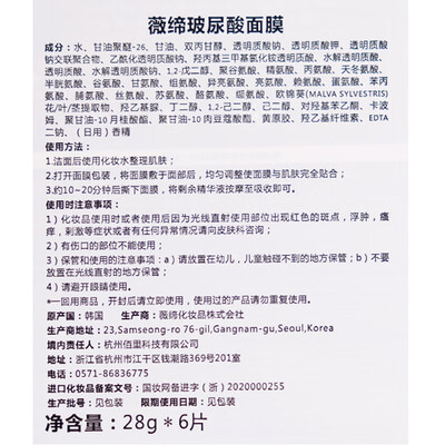 多重玻尿酸成分,为肌肤深层补水。更有多种氨基酸成分,敏感肌可以使用。丝感面膜纸,上脸柔软透气。