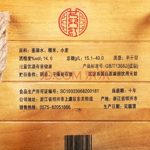 女兒红 半干型绍兴黄酒