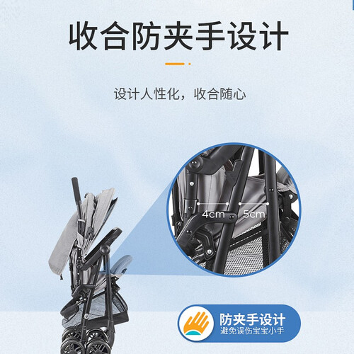 收合防夹手设计,避免误伤宝宝,给足孩子安全感。44cm高景观设计,摆脱地面的热气和汽车尾气,守护孩子呼吸健康。