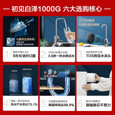 五级高精度过滤系统,不仅能滤除水中杂质还能减少细菌,优化口感,让家人放心饮用。大通量净水,出水速度快,接水无需长久等待。
