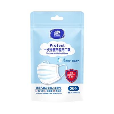 拥有3层防护,阻隔各种污染颗粒,细菌过滤效率大于等于95%,保护呼吸安全。小尺寸设计,贴合面部,适合儿童和小脸人群使用。