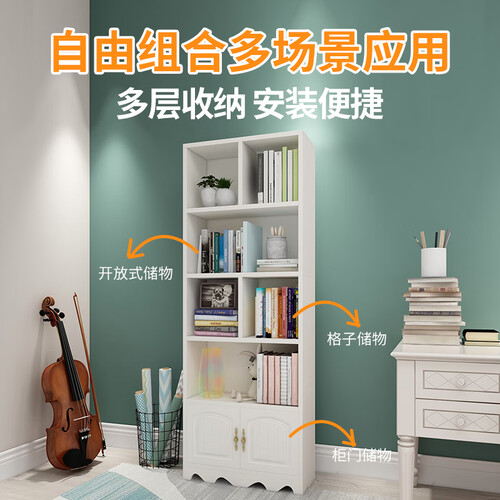 采用多格分区设计,书籍、小物件都能够轻松分类,看起来整齐有序。下层封闭柜与之结合,隐私物品收纳更放心。