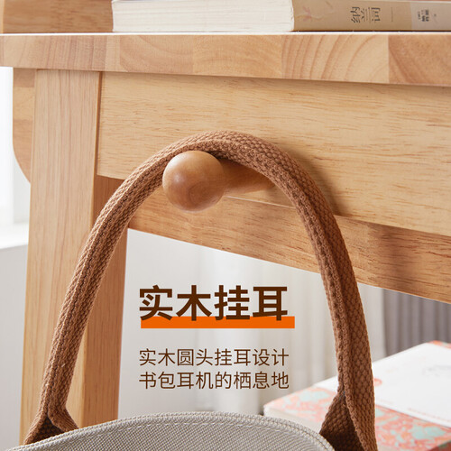 宽大厚实桌面,精选天然橡胶木拼接,木纹清晰可见,平整光滑易清洁打理;实木挡板,物品不易掉落,使用方便。