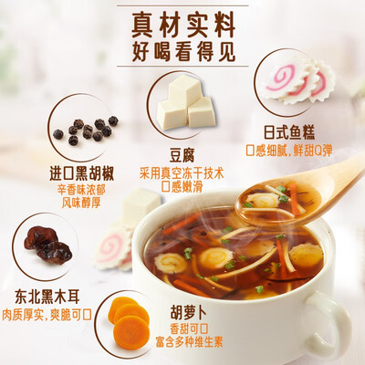 新鲜胡萝卜,香甜可口。东北黑木耳,肉质厚实,爽脆可口。进口黑胡椒,香味浓郁,风味醇厚。搭配日式鱼糕,口感细腻,鲜甜Q弹。