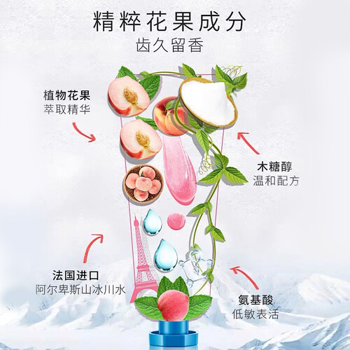 萃取樱花的精华元素,口腔萦绕着清新的花香味,让你说起话来更自如。无添加有害物质,不会伤害口腔结构,孕妇小孩也适合使用。