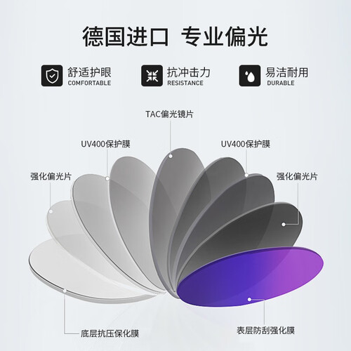 TAC材质高清偏光镜片,阻隔眩光和强光,适合驾驶佩戴安全出行。