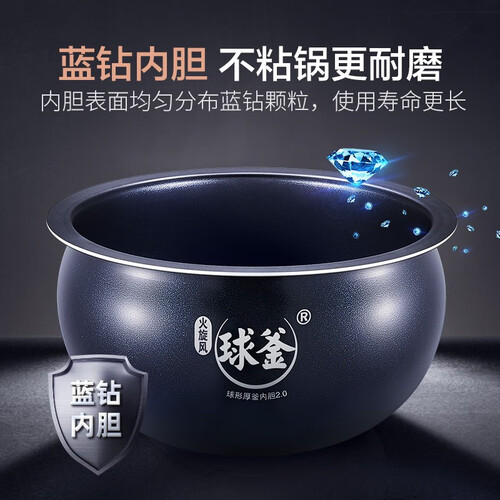 搭载聚能厚釜内胆,配合一键柴火饭功能,轻松吃上香糯柴火饭。内胆分布蓝钻涂层,米饭不粘锅,清洁更加简单轻松,涂层还不易脱落,更健康。