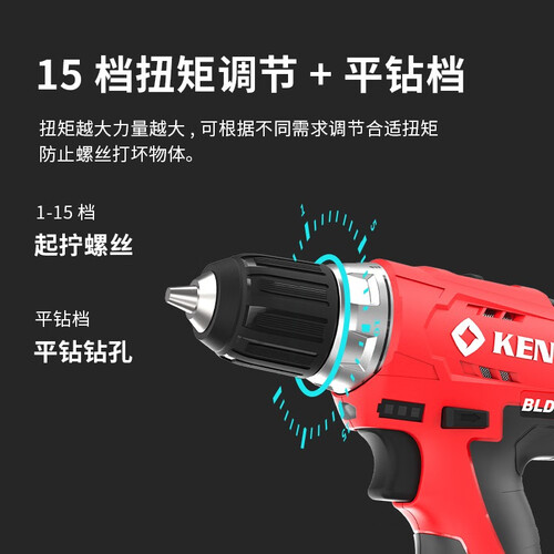 稀土永磁无刷电机,15+1扭力调节,30牛米大扭矩,两挡调速,动力强劲,持久耐用。