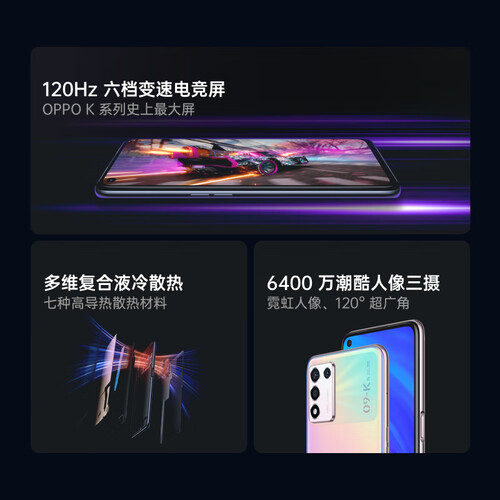 具备120Hz六挡变速刷新率,可以根据需求自由调节,刷屏更流畅。多维复合液冷散热技术,降温快,让手机可以冷静运行不发烫。