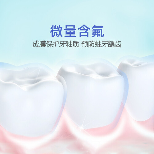 这款漱口水能清洁牙刷清洁不到的区域,溶解牙菌斑组织,从而减少牙渍生成;含有微量氟成分,防止蛀牙生成。