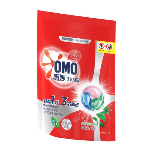 采用高分子水溶膜,溶解快速,适合机洗。洁净因子不仅针对新污渍,一周顽固污渍也能轻松去除。