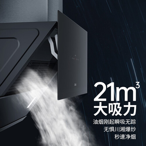 使用38°角快速拢烟设计,封锁油烟不易扩散,烹饪时更舒适。运行时仅有54分贝,不易影响体验。