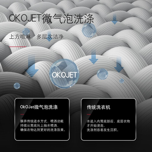 11公斤大容量,轻松搞定全家脏衣,海量洗涤,省时省水。搭载OKOJET喷淋洗技术,采用双喷头进行洗涤,轻松提升清洁效率。