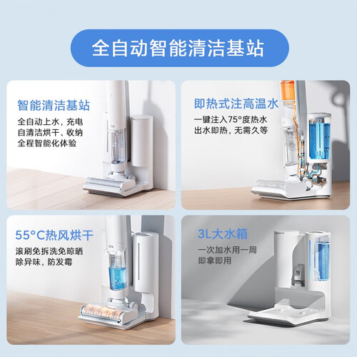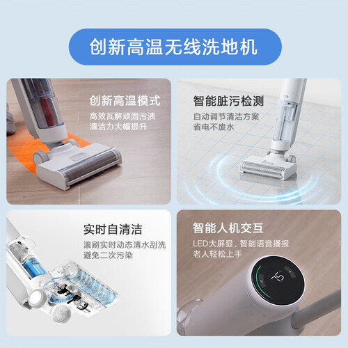 LED数码显示,功能直观。拥有热风烘干模式,自动清洁滚刷减少污水的残留。一次充电续航35分钟,满足日常清洁的需求。