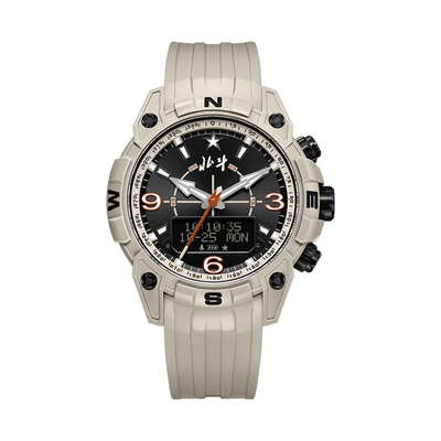 履带式表带支持50N抗拉伸性能,表带内部防水设计,久戴不捂汗。可监测当前气压、温度以及海拔,智能规划户外路线。