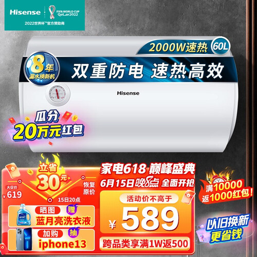 纤细的机身构造,却拥有大水量储存能力,满足小户型家庭的用水需求。升级防电墙结构,强化水路电阻,保障家人洗浴安全。
