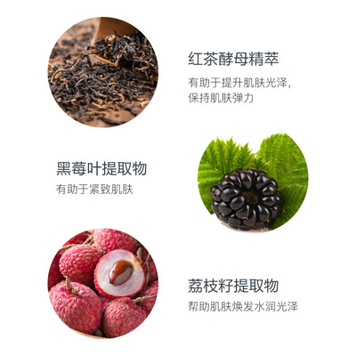 含有红茶酵母酵萃主要成分,深层补水保湿,提拉紧致肌肤。牢牢锁住肌肤水分,让肌肤柔嫩饱满,轻松拯救熬夜肌。