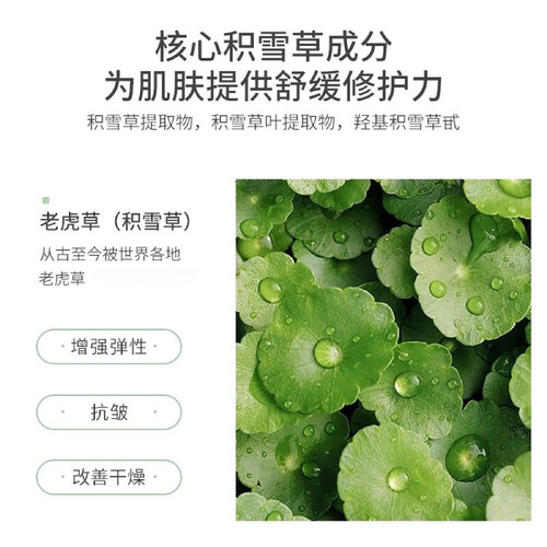 蕴含积雪草提取物,密集养护肌肤,温和不刺激,舒缓镇定敏感肌肤。适合所有肤质,调节水油平衡,减少油脂的分泌。