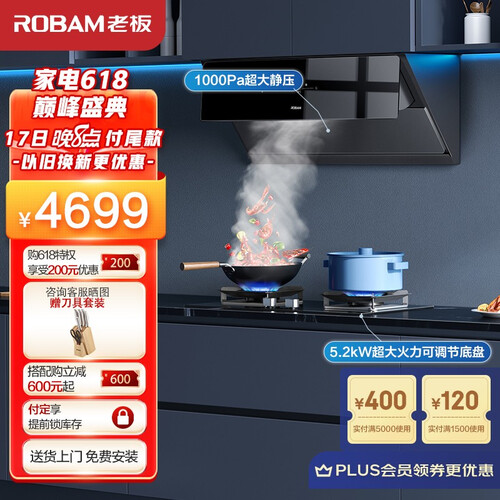 老板 大吸力红外智控油烟机套装