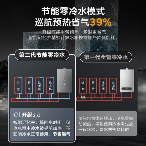 三种不同定制零冷水模式,按需设置,热水无需久等。采用双重增压系统,给全屋带来澎湃的热水,不用担心水流微弱。