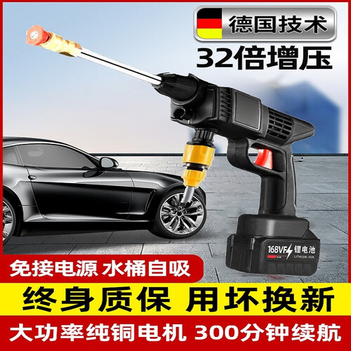 小巧便携式设计,无线款式,便于日常放在车内使用。选用德国技术,可以32倍增压,适即使使用水桶也可大压力冲洗车。