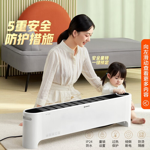 低矮的机身贴近地面,让暖空气自下而上,形成暖气充沛的热幕帘,循环供暖,带来包裹式的温暖。拥有5重安全防护,守护家人安全。