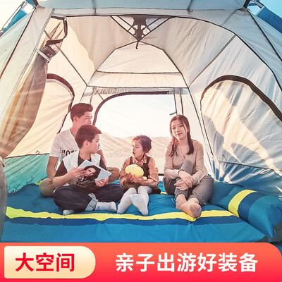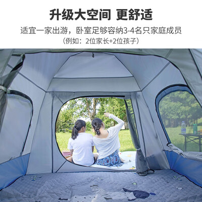 帐篷采用优选面料,防晒防水,让你在露营的时候更加放心。大空间的设计,一家四口集体出游,尽情享受愉快的亲子时光。