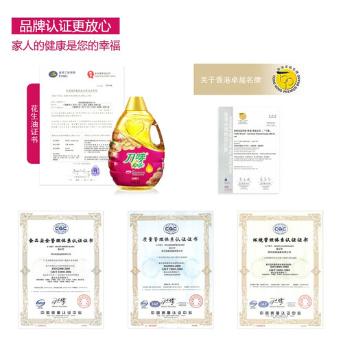 刀唛食用油精选了上品花生作为原料制成,保留了植物的营养和浓香的本真味道,能够为你带来更加舒适惬意的食用体验。