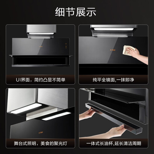 12cm纤薄机身造型,不占过多室内空间;采用反向背吸设计,避免油烟聚集;全效降噪系统的采用,低噪运行更安静。